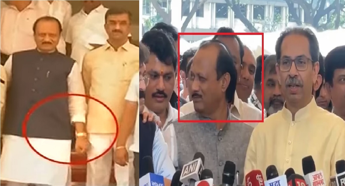 विरोधी पक्ष नेते अजित पवार (Ajit Pawar) पुन्हा एकदा चर्चेत आले आहेत ते त्यांच्या नव्या व्हिडिओमुळे. काही दिवसांपूर्वी अजित पवार यांचा डोळा मारतानाचा व्हिडिओ व्हायरल झाला होता. त्यांनतर आता त्यांच्या बुक्की मारतानाचा व्हिडिओ व्हायरल झाला आहे. उत्पादन शुल्कमंत्री शंभूराज देसाई यांना अजित पवार हळूच बुक्की मारत असल्याचे व्हिडिओत दिसत आहे. शंभूराज देसाई यांना गुपपूच मारलेल्या बुक्कीचा अर्थ काय याबाबत राजकीय वर्तुळात जोरदार चर्चा रंगली आहे.