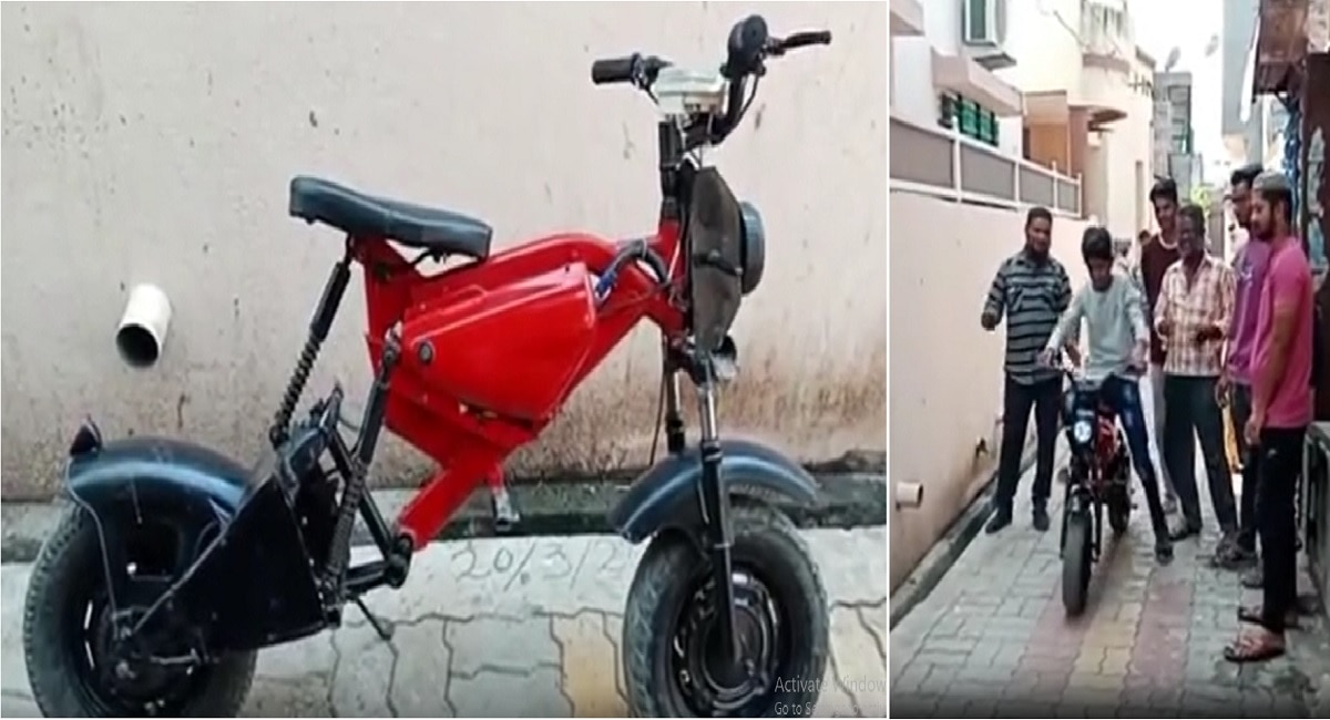 Bike jugaad in India : मुलाचं बाईक घेण्याचं स्वप्न होतं. तर करंजामदील शाफीन यांची आर्थिक परिस्थिती बेताची होती. मात्र, मुलाचं स्वप्न पूर्ण करण्यासाठी त्यांनी स्वत:च भंगराच्या साहित्यापासून ही ई-बाईक बनवली.
