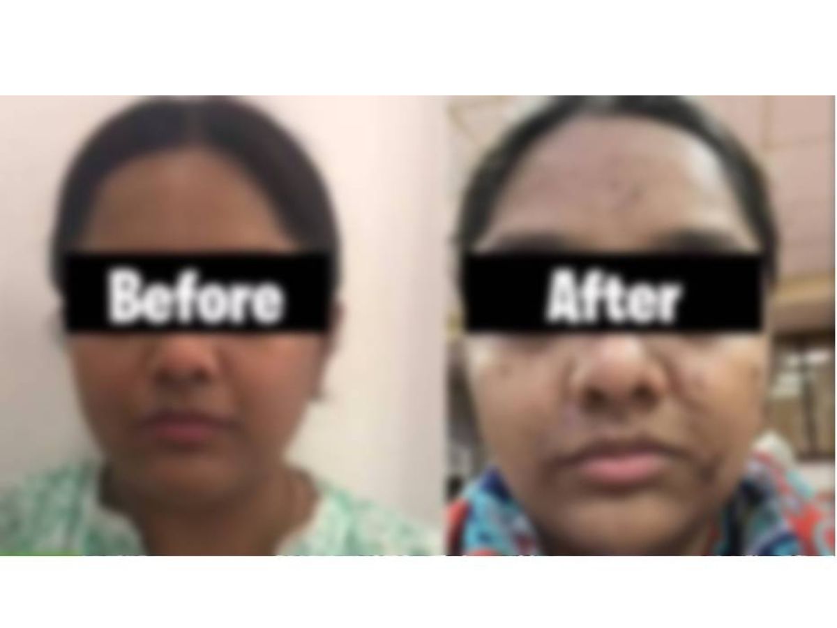 घटनेच्या दुसऱ्या दिवशी सकाळी महिलेने त्वचारोगतज्ज्ञांचा सल्ला घेतला. तसंच, कूपर रुग्णालयातील डॉक्टरांचीही भेट घेतली. तेव्हा तिथल्या डॉक्टरांनी लेखी स्वरुपात अहवाल दिला आहे. महिलेच्या चेहऱ्यावर असलेले व्रण हे कायमस्वरुपी आहेत. निकृष्ट प्रोडक्ट वापरल्याने किंवा चुकीच्या प्रमाणात प्रोडक्ट वापरल्याने त्याची रिअॅक्शन महिलेच्या चेहऱ्यावर उमटली आहे. त्यामुळं तिच्या चेहऱ्यावर जळजळ होऊन त्याचे व्रण उमटले आहेत.