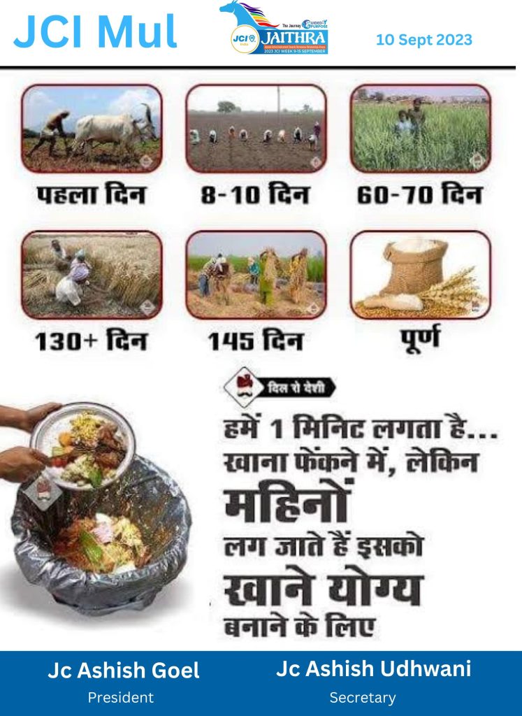 १२/९/२०२३ जूनियर चेंबर इंटरनेशनल मूल मध्ये जेसी वीक सुरू असून क्लीन प्लेट चैलेंज कार्यक्रम नवभारत कन्या विद्यालय, सेंट एन्स कॉन्वेंट तसेस बीपीएस कॉन्वेंट मूल या मध्ये ३००० विद्यार्थिनी उत्साहाने सहभाग घेतला।