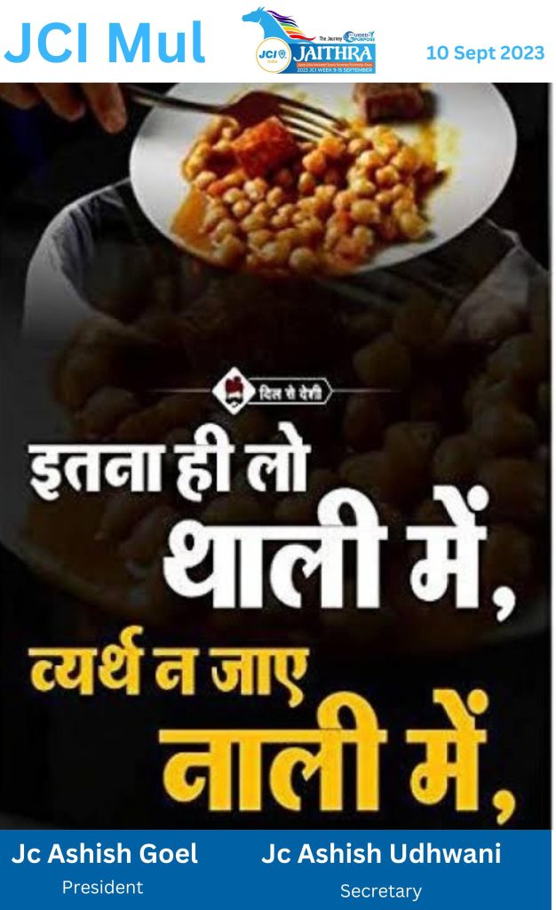 या कार्यक्रमात विद्यार्थीना अन्नाचा अपव्यय कसा होतो तसेच आपण प्लेट मध्ये जो अन्न घेतो आणि तो अन्न जास्तीचा अन्न न खाता प्लेट मध्ये टाकून देतो। असा हजारों टन अन्न देशात वाया जात असतो। आपला ला आवश्यक असलेला अन्न प्लेट मध्ये घ्यावा व अन्नाचा अपव्यय कमी करावा या बदल विद्यार्थीना संगीतले