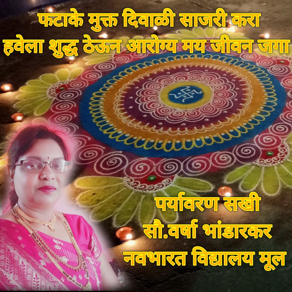 आरोग्य मय जीवन जगा..अशा पर्यावरण पूरक म्हणी.. द्वारे जणजागृती इ.कार्य सतत त्या निस्वार्थ पणे करुन दिवाळी हा आनंदाचा सण साजरा केला..