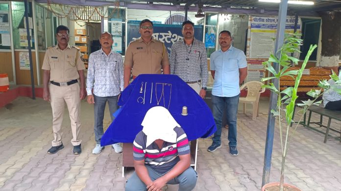 मुल: – शहरातील राजु जगण चिकाटे शिक्षक असून वार्ड क्रमांक 14 येथे वास्तव्यास असून दिनांक 13/ 1/2024 ला काही कामा निमित्ताने बाहेर गावी गेले होते त्याच वेळी राजु चिकाटे यांचा नातेवाईक स्नेहल प्रफुल देवगडे रहाणार वायगाव चामोर्शी तहसिल हा दूपारी 2 वाजता चा सुमारास घरी आला व घरी कोणी नसल्याची संधी साधून मागील दारातुन जाउन चोरी केली पोलिसांनी योग्य प्रकारे तपास करुण आज दिनांक 16/1/2024 ला आरोपीस चोरी केलेल्या माला सह हस्तगत करुन अटक केली