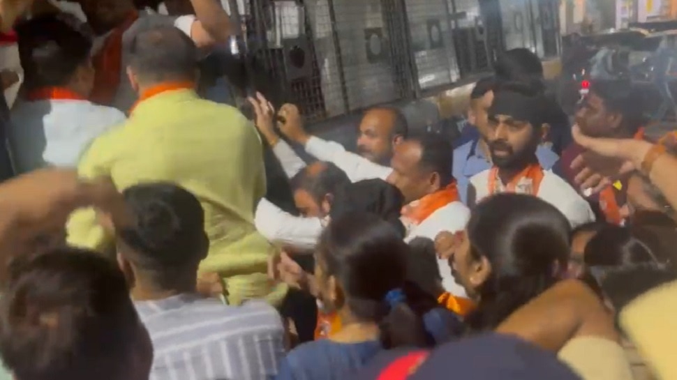 Sanjay Raut in Jalgaon : खासदार संजय राऊत जळगाव जिल्हा दौऱ्यावर आहेत. राजधानी एक्स्प्रेसने राऊत यांचे जळगाव रेल्वे स्थानकावर आगमन झाले. यावेळी जळगाव रेल्वे स्थानकावर ठाकरे गटाच्या कार्यकर्त्यांच्यावतीने त्यांचे जल्लोषात स्वागत करण्यात आले. दरम्यान, गुलाबराव पाटील यांच्या कार्यकर्त्यांकडून त्यांना काळे झेंडे दाखवण्याचा प्रयत्न केला.. पण,