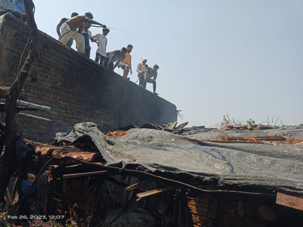 नागरिकांनी मोटार पंपाच्या सहाय्याने आग विझवण्याचा प्रयत्न केलात मात्र आग विजवेपर्यंत आग भयानक असल्याने घरातील सर्वच साहित्य जळून खाक झाले नागरिकांनी आग विझवली कोरपणा तालुक्यातच असलेल्या नारडा दालमिया सिमेंट कंपनीमध्ये दूरध्वनीद्वारे संपर्क करून माहिती दिलीअग्निशामक बोलावण्यात आली