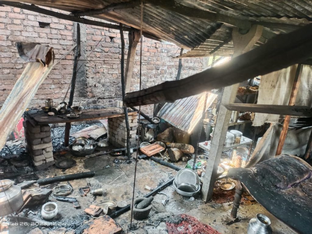 गोपाल गाजुलवार तालुक्यातील कन्हाळगाव येथे राहतात. रविवारी सकाळी अकरा वाजता कुटुंबातील व्यक्ती बाहेरगावी गेले होते मात्र कुटुंब प्रमुखांची पत्नी गावातील स्वस्त धान्य दुकानांमध्ये धान्य आणण्याकरिता गेल्या होत्या धान्य घरी घेऊन येताच अचानक आपल्या घराला आग लागल्याचे पाहताच आरडाओरडा केल्यात व घराशेजारी असलेले नागरिक येऊन पाहताच संपूर्ण घराला आगीने वेळा घातलेला होता तेव्हा शेजारील