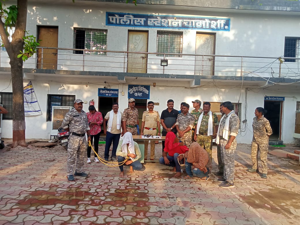 सदरची कारवाई मा. पोलीस अधीक्षक गडचिरोली श्री. नीलोत्पल सा., मा. अपर पोलीस अधीक्षक (प्रशासन) श्री. कुमार चिंता सा. तसेच उपविभागीय पोलीस अधिकारी गडचिरोली श्री. सुरज जगताप यांचे मार्गदर्शनाखाली पोस्टे चामोर्शी येथील प्रभारी अधिकारी विश्वास पुल्लरवार, पोउपनि. बालाजी लोसरवार, पोउपनि. दुर्योधन राठोड, मपोउपनि. राधा शिंदे, पोहवा/1851 राजेश गणवीर, पोहवा/1181 व्यंकटेश येल्लला यांनी पार पडली. या घटनेत शहरातील नागरिकांनी सतर्कता बाळगत तीन संशयीत इसमांना पकडून पोलीस प्रशासनाला सहकार्य केले त्यामुळे मोठा अनर्थ टळला आहे. अशाच प्रकारचे सहकार्य नागरिकांनी करावे असे आवाहन मा. पोलीस अधीक्षकांनी सर्व जनतेला केले आहे.