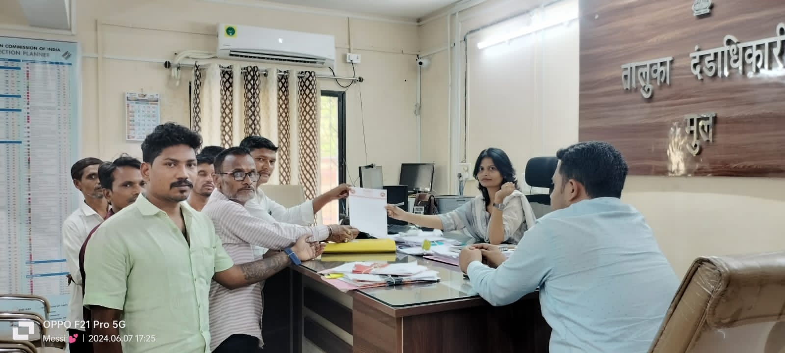 मुल. पिकविम्याचा लाभ अजूनही शेतकऱ्याना मिळाला नसून शेतकरी हवालदिल झाला आहे,तर दुसरी कडे घरकुल मिळाले पण वाळू उपलब्ध नाही म्हणून गोरगरीब उघड्यावर आहेत.आणि शासन प्रशासन मात्र सुस्त आहे.करिता शेतकरी आणि घरकुल धारकांना न्याय मिळवून देण्याकरिता दीं.७.६.२३ रोजी शिवसेना जिल्हा प्रमुख संदीप भाऊ गीऱ्हे यांचे नेतृत्वात शिवसेना तालुका प्रमुख प्रशांत गट्टूवार यांनी शिवसेनेचे शिस्ट मंडळ घेऊन मुल तहसीलदार यांना भेटून निवेदन दिले.