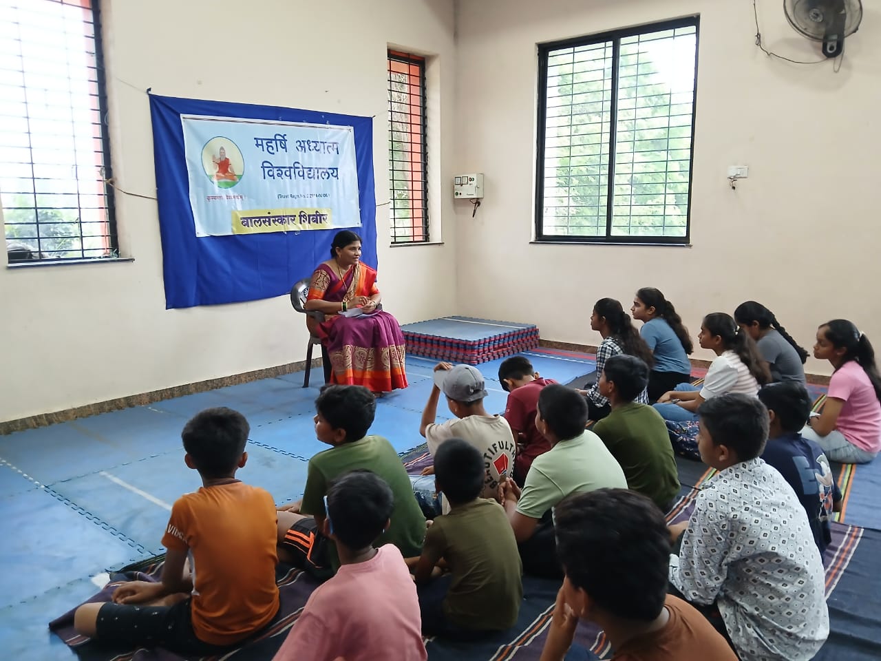 महर्षी अध्यात्म विश्वविद्यालय या न्यासातर्फे गरजूंना कपडे वाटप,विनामुल्य वैद्यकीय तपासणी, नैतिकमूल्य संवर्धन कसे करावे , ताणतणाव मुक्त जीवन कसे जगावे,याविषयी प्रबोधन, असे विविध समाजोपयोगी उपक्रम राबविण्यात येतात. भावी पिढी संस्कारक्षम व्हावी या उद्देशाने हा उपक्रम घेण्यात आला. न्यासाच्या वतीने सौ गिता कोंतमवार यांनी मार्गदर्शन केले.या उपक्रमासाठी सौ. अर्चना येनूरकर यांनी परिश्रम घेतले.या उपक्रमाचा लाभ १६ मुलांनी घेतला.