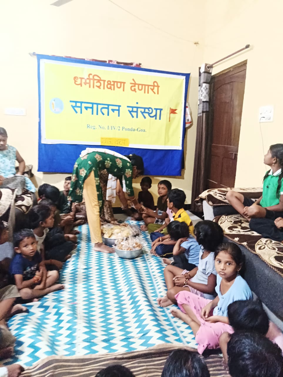 समाजसाहाय्य, राष्ट्ररक्षण आणि धर्मजागृती यांसाठी कार्यरत सनातन संस्था या न्यासातर्फे बुधवार दिनांक १३ ऑगस्ट २०२५ रोजी सौ.मिरा बाई नरुले यांच्या घरी, वार्ड क्र.०१,मुल येथे खाऊ वाटप करण्यात आला.