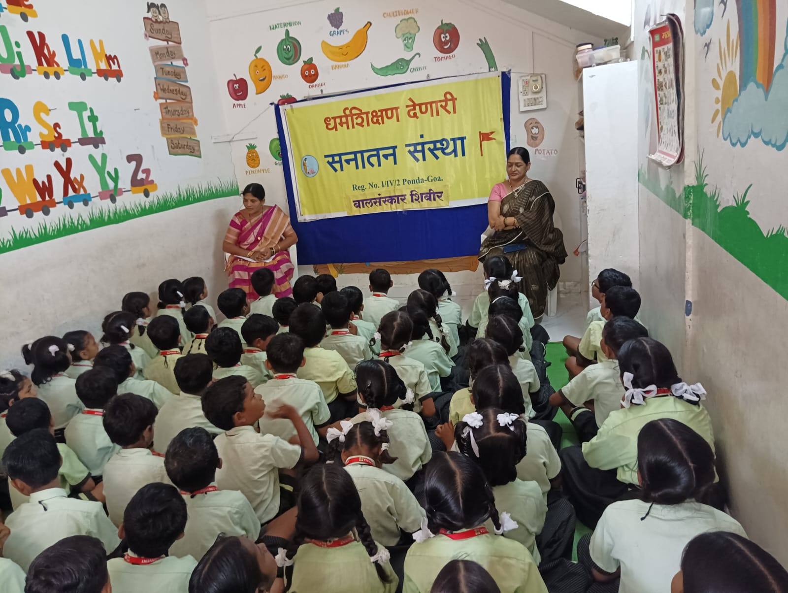 मुल: -समाजसाहाय्य, राष्ट्ररक्षण आणि धर्मजागृती यांसाठी कार्यरत सनातन संस्था या न्यासातर्फे गुरुवार दिनांक १८ सष्टेंबर २०२५ रोजी विद्या मंदिर कॉन्व्हेंट मूल येथे बालसंस्कार शिबीर घेण्यात आले. सनातन संस्था या न्यासातर्फे गरजूंना कपडे वाटप,विनामुल्य वैद्यकीय तपासणी, नैतिकमूल्य संवर्धन कसे करावे , ताणतणाव मुक्त जीवन कसे जगावे,याविषयी प्रबोधन, असे विविध समाजोपयोगी उपक्रम राबविण्यात येतात. भावी पिढी संस्कारक्षम व्हावी या उद्देशाने हा उपक्रम घेण्यात आला. न्यासाच्या वतीने सौ.गिता कोंतमवार यांनी मार्गदर्शन केले .या उपक्रमासाठी शाळेच्या अध्यक्षा सौ.अनिता मोगरे आणि शाळेच्या मुख्याध्यापिका सौ.मनिषा खोब्रागडे आणि इतर शिक्षकवृंद यांचे मोलाचे सहकार्य लाभले .या उपक्रमाचा लाभ १०८ विद्यार्थ्यांनी घेतला.