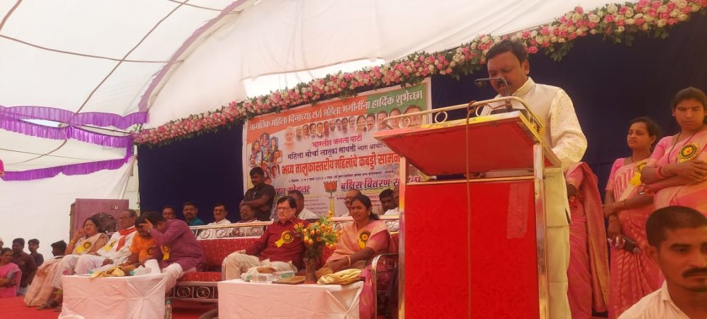 समाजाच्या मोठ्या रोषाला सामोरे जावे लागले होते. पण तरीही सगळ्या प्रकारचा विरोध पत्करुन त्यांनी स्त्री शिक्षणाची चळवळ चालू ठेवली. त्याचेच फलस्वरुप म्हणून आज सर्व क्षेत्रात महिला आघाडीवर असल्याचे आपणास दिसते.त्यासाठीआंतरराष्ट्रीय महिला दिन साजरा करण्याचे सर्वात मोठे उद्दिष्ट म्हणजे महिला आणि पुरुषांमध्ये समानता निर्माण करण्यासाठी जागरूकता आणणे आहे असे प्रतिपादन खासदार अशोकजी नेते यांनी या कार्यक्रमाच्या अध्यक्षस्थानी केले.