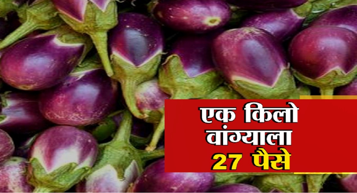 Maharashtra News: अवकाळी पावसामुळे शतेकरी मोठ्या संकटात सापडला आहे. त्यातच पिकाला योग्य दर मिळत नसल्याने शेतकरी हवालदिल झाला आहे. 27 प्रति किलो असा दर वांग्याला मिळाला आहे. ही एक प्रकारे शेतकऱ्याची चेष्टा आहे.