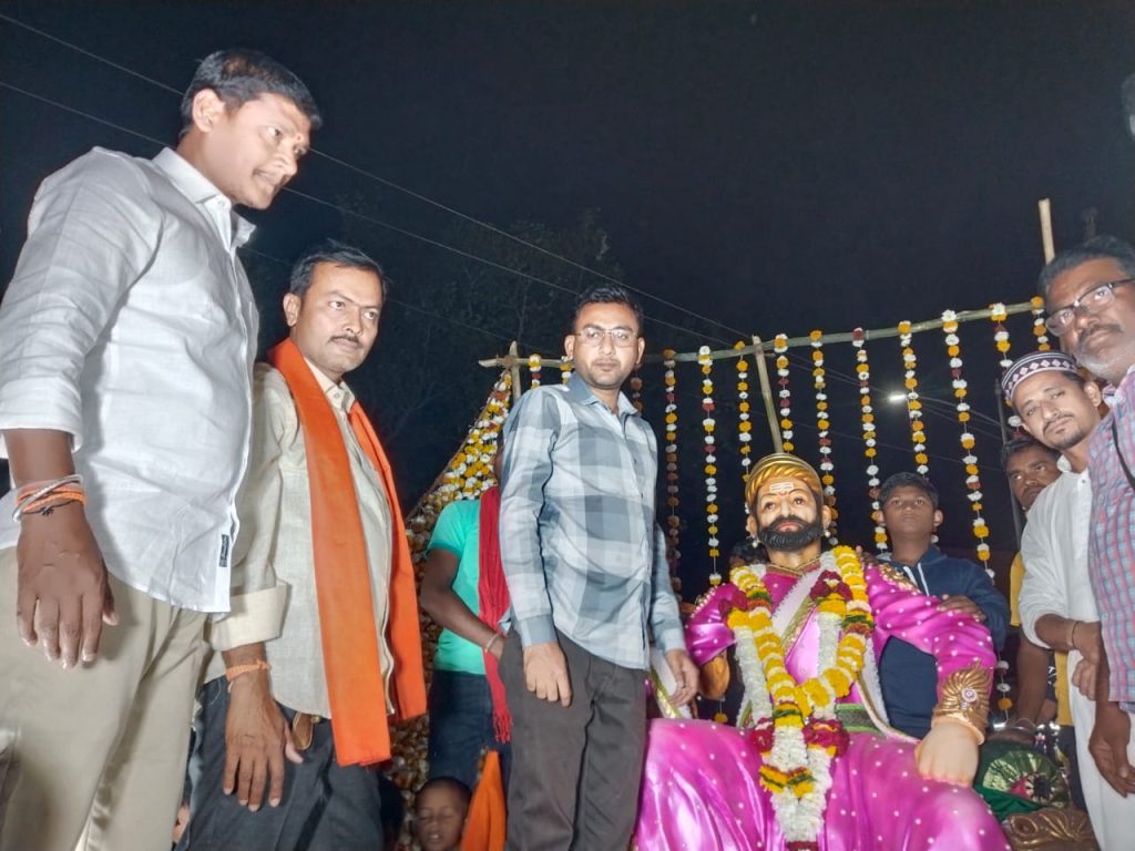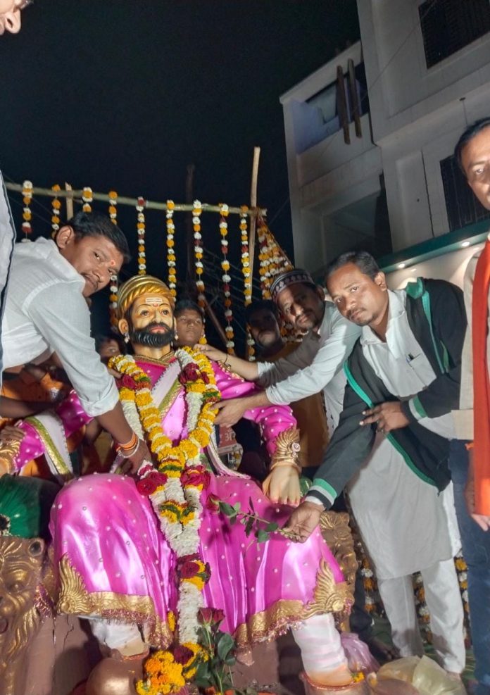 यावेळी शोभा यात्रा सोमनाथ रोड येथुन असंख्य शिवसैनिका समवेत शोभा यात्रेला सुरूवात झाली.शोभा यात्रा ही मस्जिद सामोर पोहचली असता मुस्लिम बांधवानी छत्रपति शिवाजी महाराज यांचे प्रतिमेला मालार्पण करून शिवसेना तालुका प्रमुख प्रशांत गट्टूवार तथा सर्व पदाधिकारी यांचे पुष्पगुच्छ देऊन स्वागत केले.
